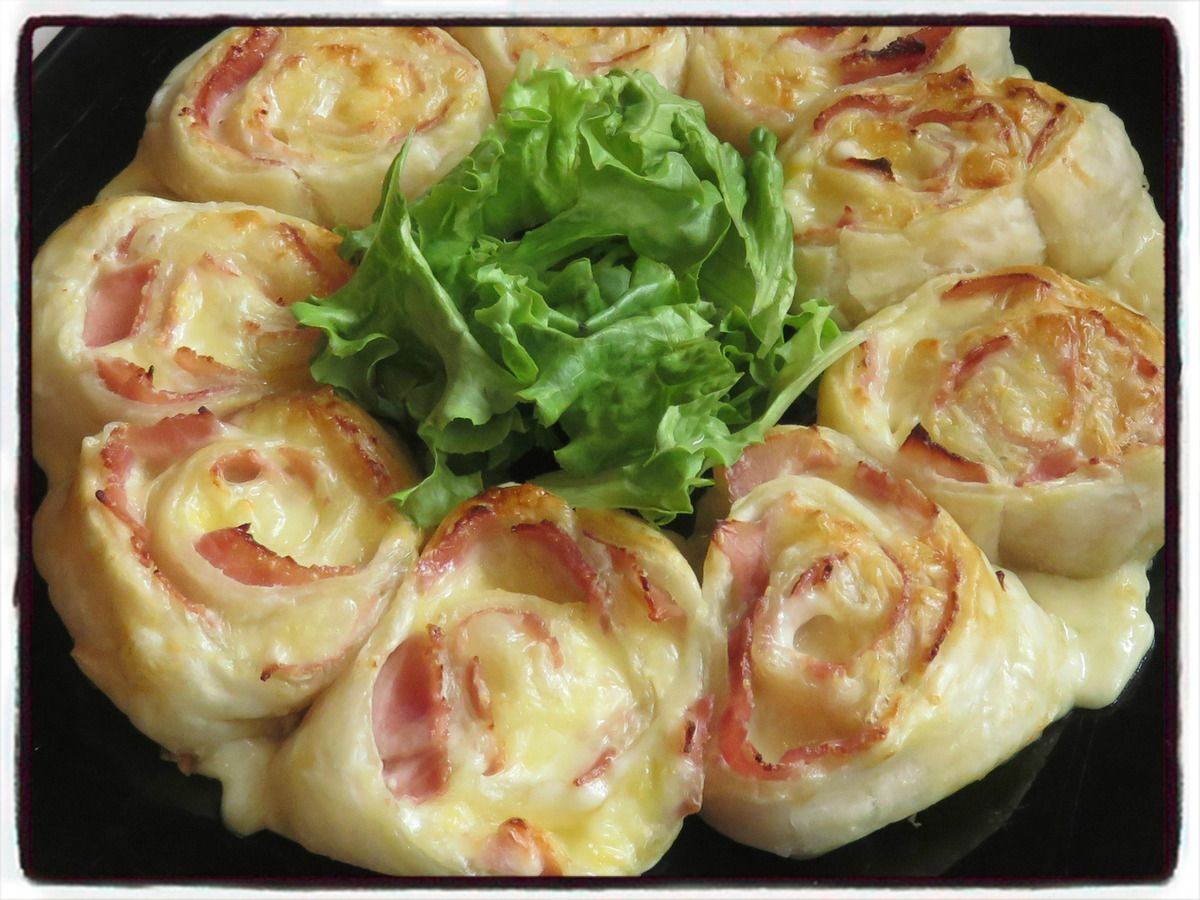 2/ Disposer le jambon puis le fromage à raclette coupés en lamelles par dessus.