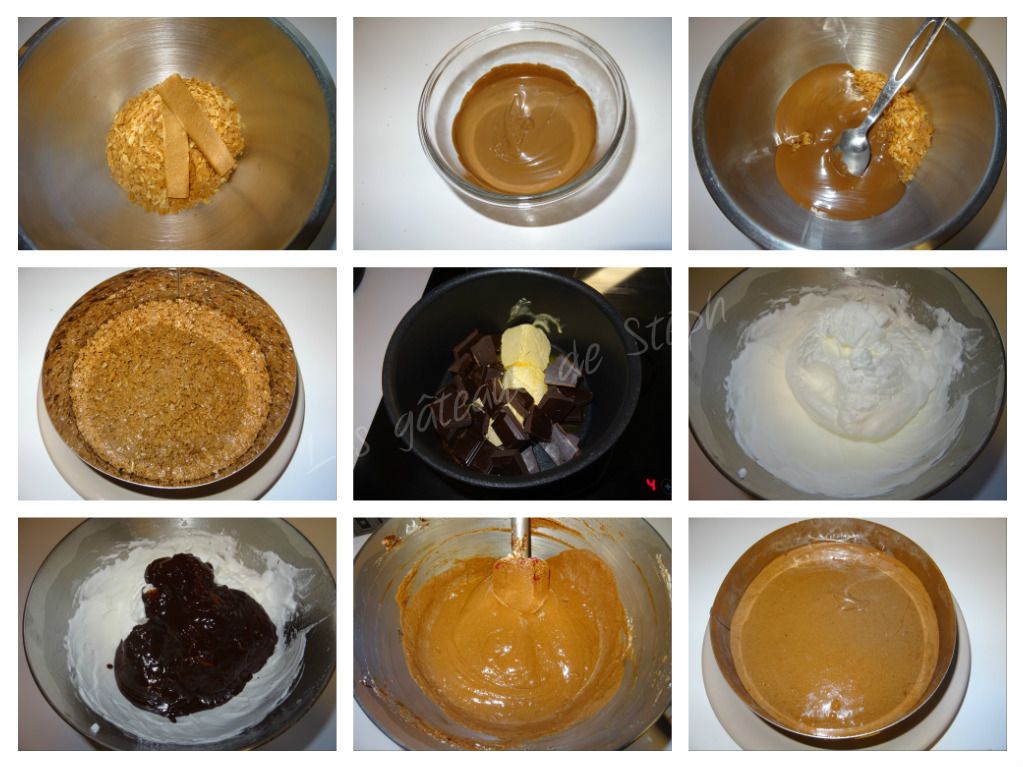 4/ Verser la mousse sur le croustillant praliné et réserver 1 heure au frigo.