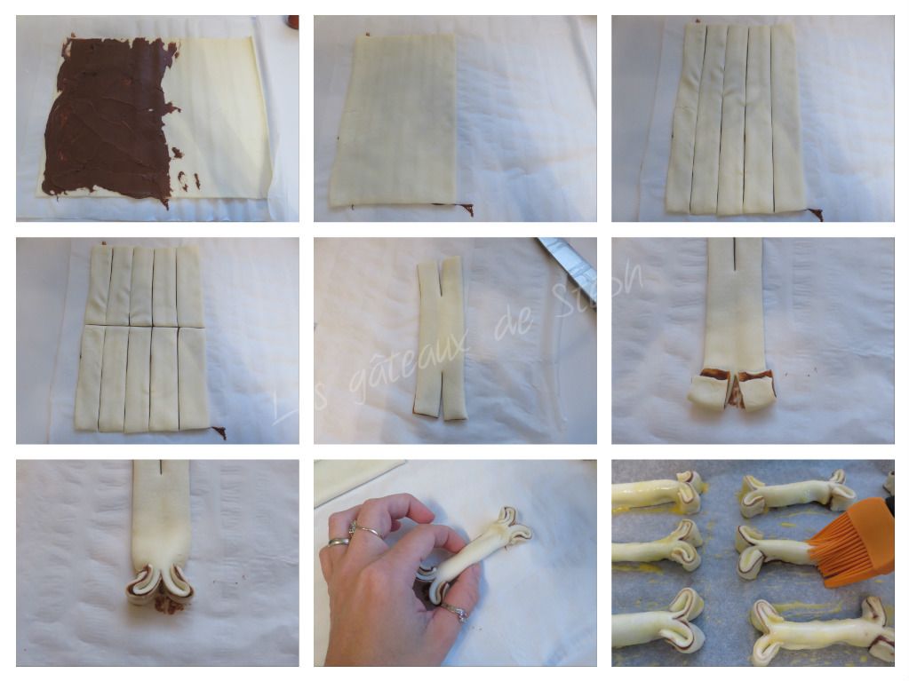 3/ Entailler les 2 extrémités de chacune sur environ 3cm. Rouler les 2 petits morceaux de pâte de chaque côté puis les tourner de façon à les redresser. Du bout des doigts, façonner la pâte pour former un joli os.