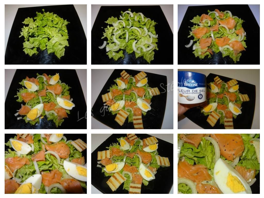 4/ Faire griller les tranches de pain, les couper et les placer tout autour de la salade.