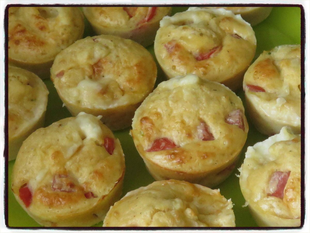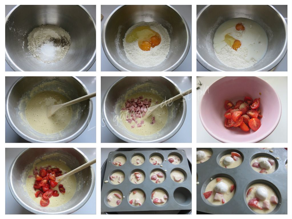 4/ Répartir cette préparation dans des empreintes à muffins puis disposer une boulette de mozzarella sur chaque muffins.
