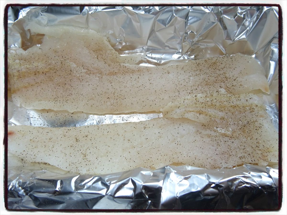 3/ Disposez une feuille de papier aluminium dans un plat et mettez les filets de merlan par-dessus. Salez et poivrez.