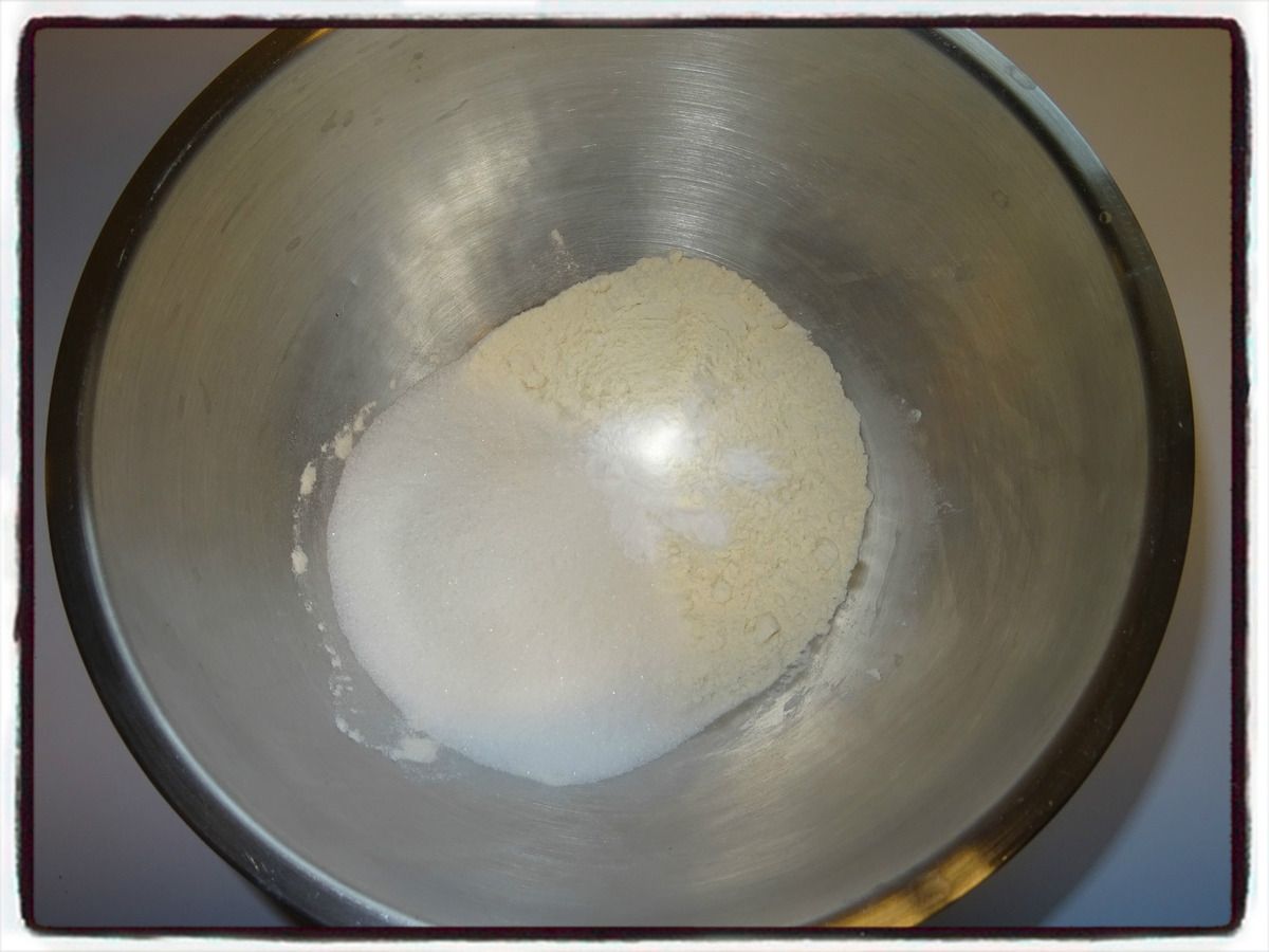 1/ Dans un bol, mélangez la farine, le sucre et la levure.