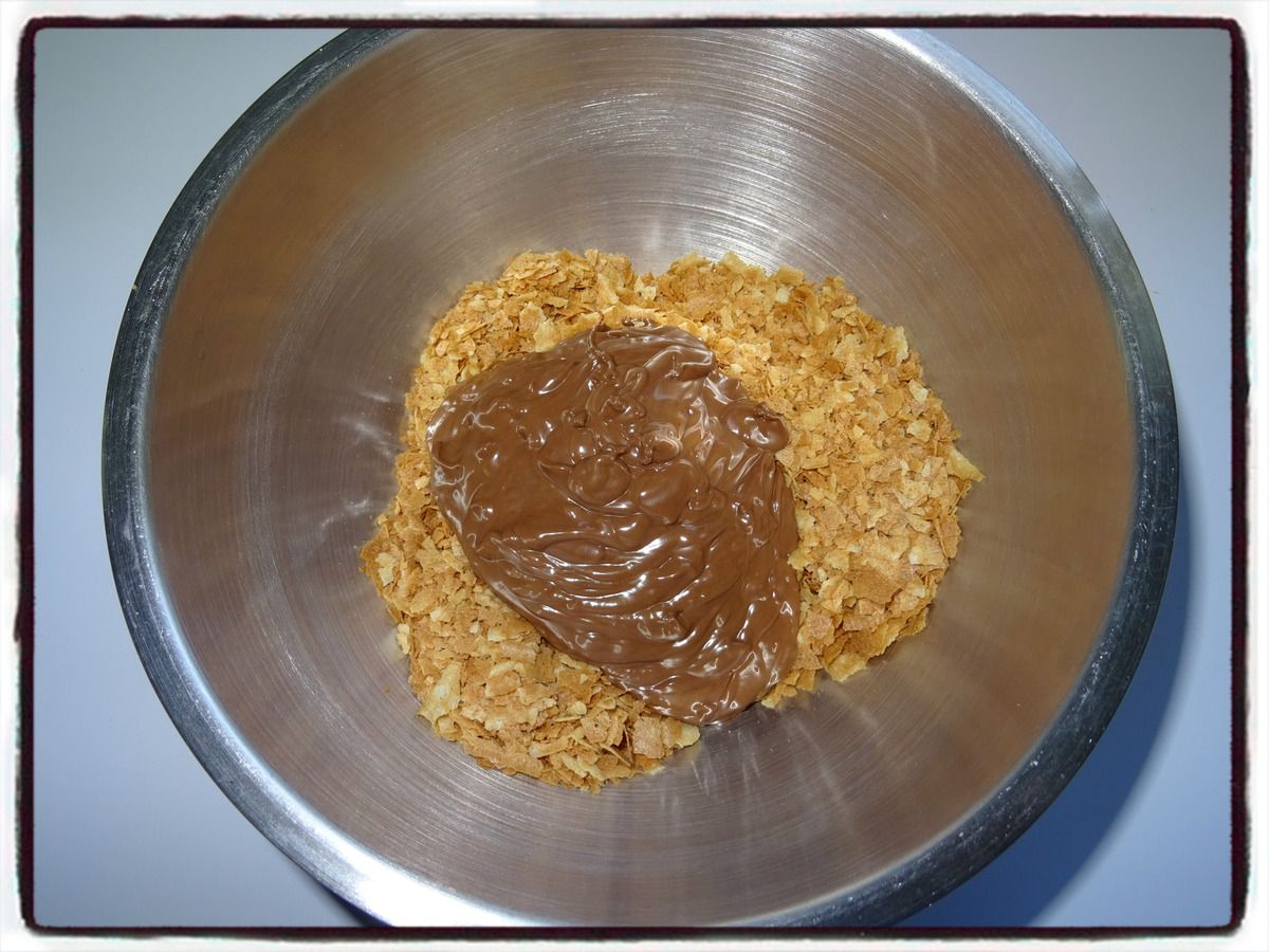 2/ Ajoutez le chocolat praliné aux gavottes émiettez et mélangez bien.