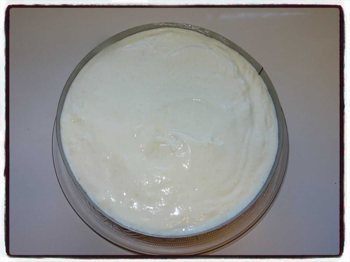 Test en cours. J'ai double les doses pour mon cercle de 26cm... J'ai utilise des poires fraîches étant donné que est la saison :-) Ça m'a fait bcp bcp bcp d'appareil a bavarois . . . J'ai pas pu tout mettre. On verra si ça marche bien a prendre quand même. J'ai ajouter des morceaux de poires dedans . C'est en stop froid dans le frigo pdt 2h pour le moment