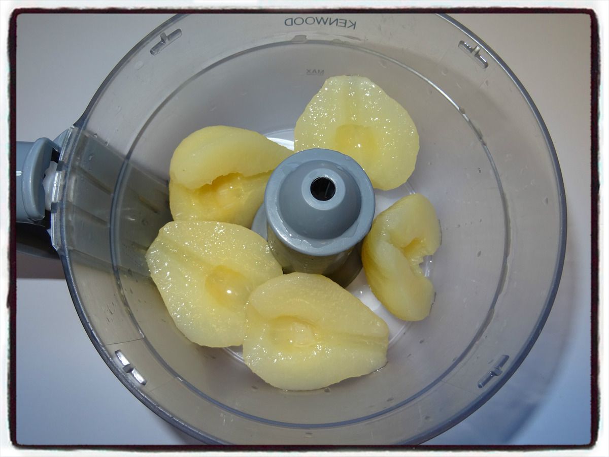 9/ Préparez le miroir. Mixez 300g de poires au sirop. Réservez un peu de jus.
