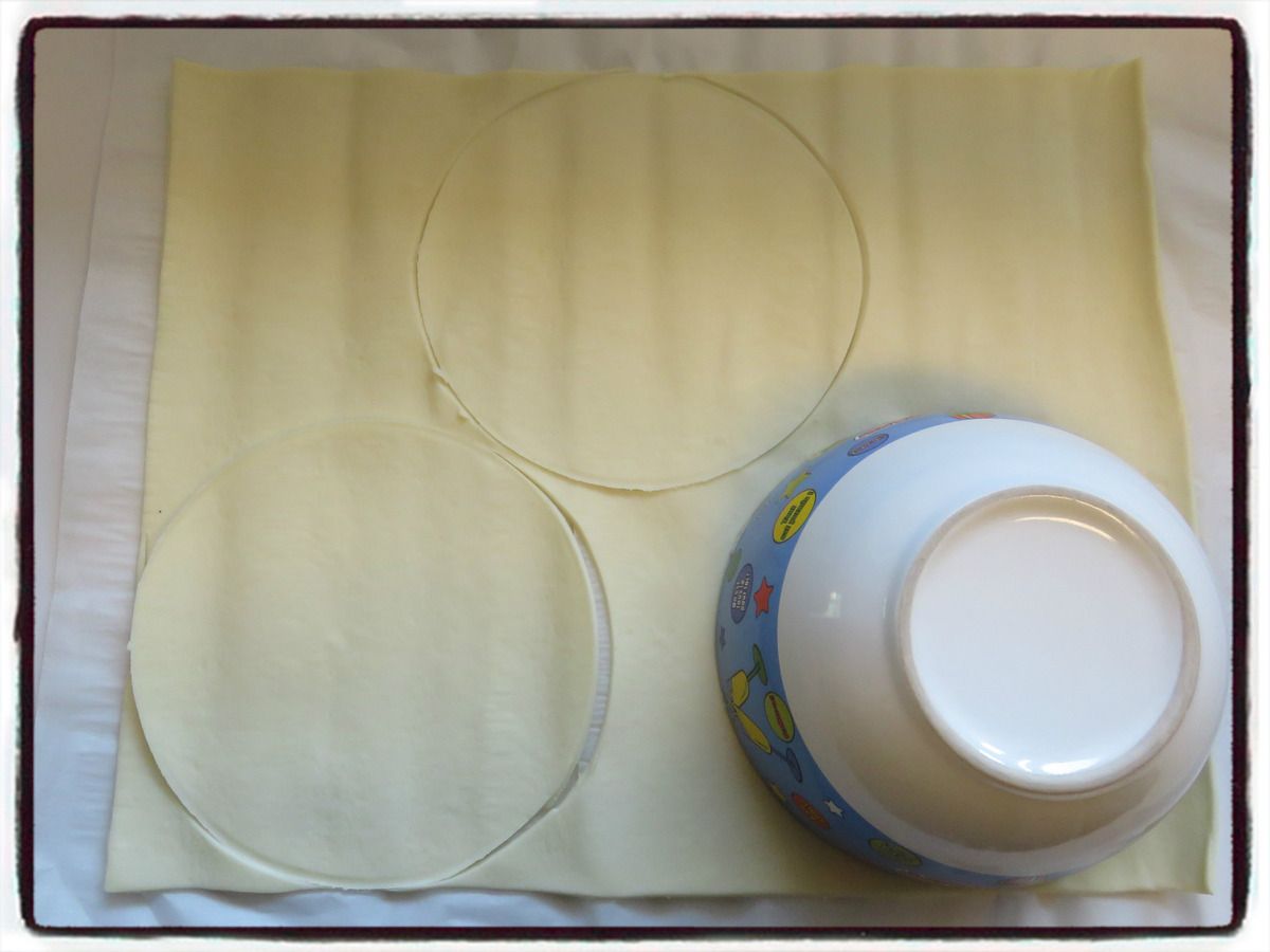 1/ Découpez des ronds dans la pâte feuilletée à l'aide d'un grand bol.