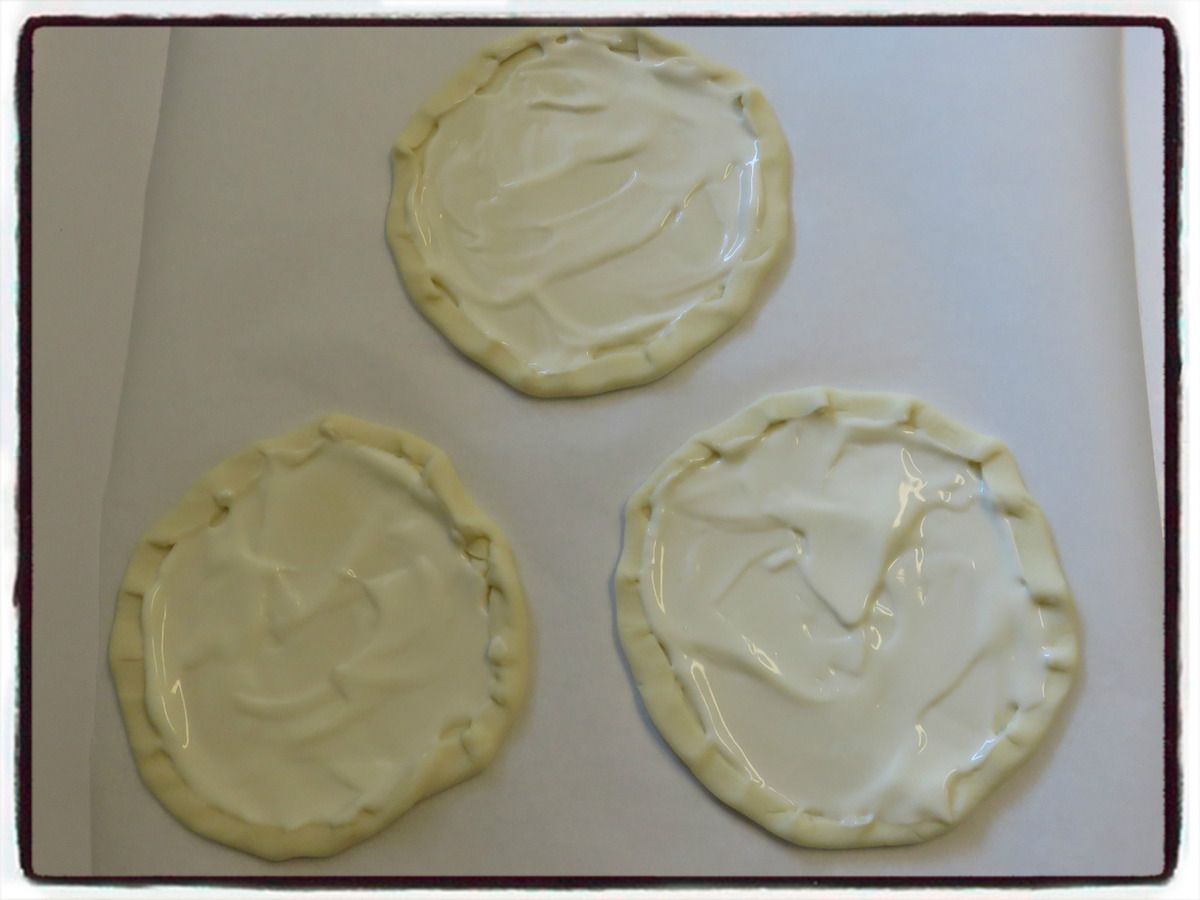 3/ Étalez un peu de crème fraîche sur chaque rond de pâte.