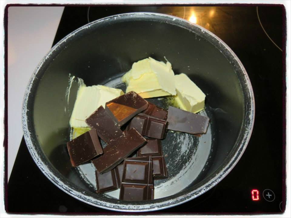 10/ Préparez la mousse au chocolat. Faites fondre ensemble le beurre et le chocolat à la casserole.