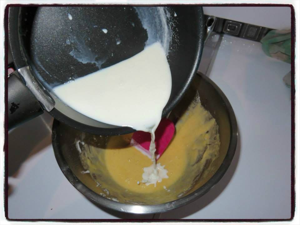 7/ Versez le lait sur cette préparation et remettez quelques minutes sur le feu pour faire épaissir.