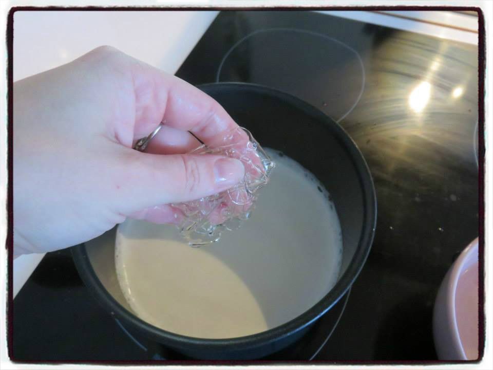 5/ Mettez le lait à chauffer avec le sucre vanillé. Une fois que le lait bout, faites-y dissoudre la gélatine.