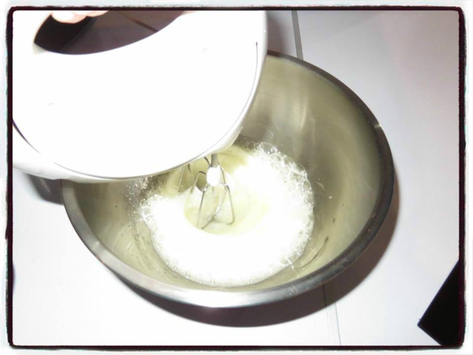 14/ Préparez la meringue. Commencez à battre les blancs en neige. Dès qu'ils commencent à mousser, ajoutez-y le sucre peu à peu tout en continuant à battre.