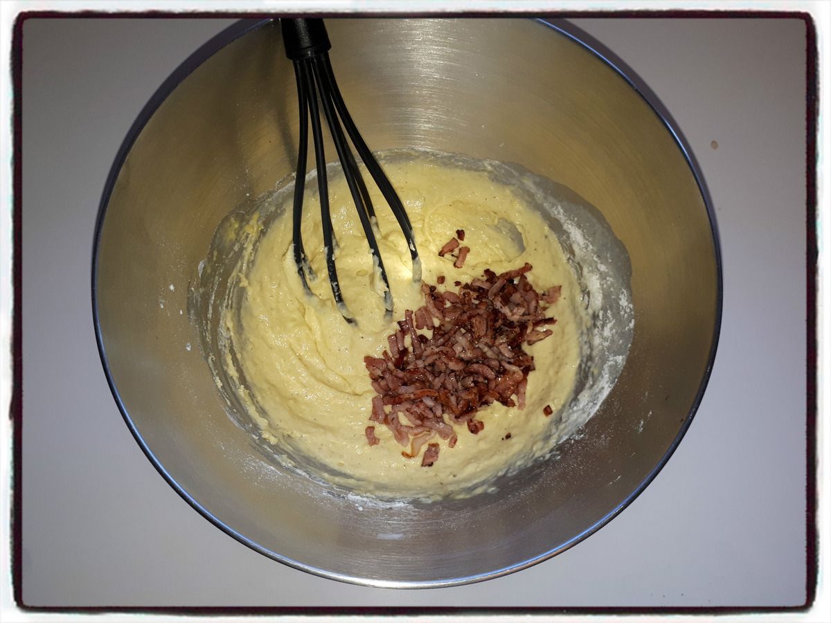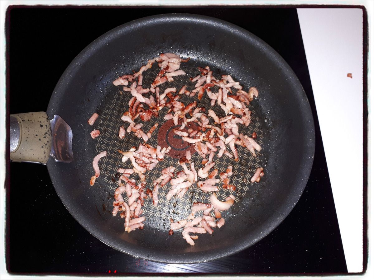 3/ Faites dorer les lardons à la poêle et ajoutez-les à la préparation précédente.