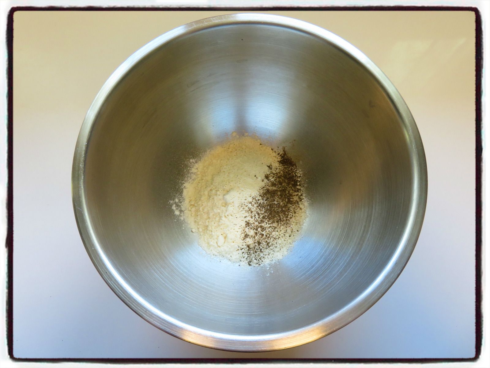 1/ Dans un bol, mélangez la farine, le sel et le poivre.