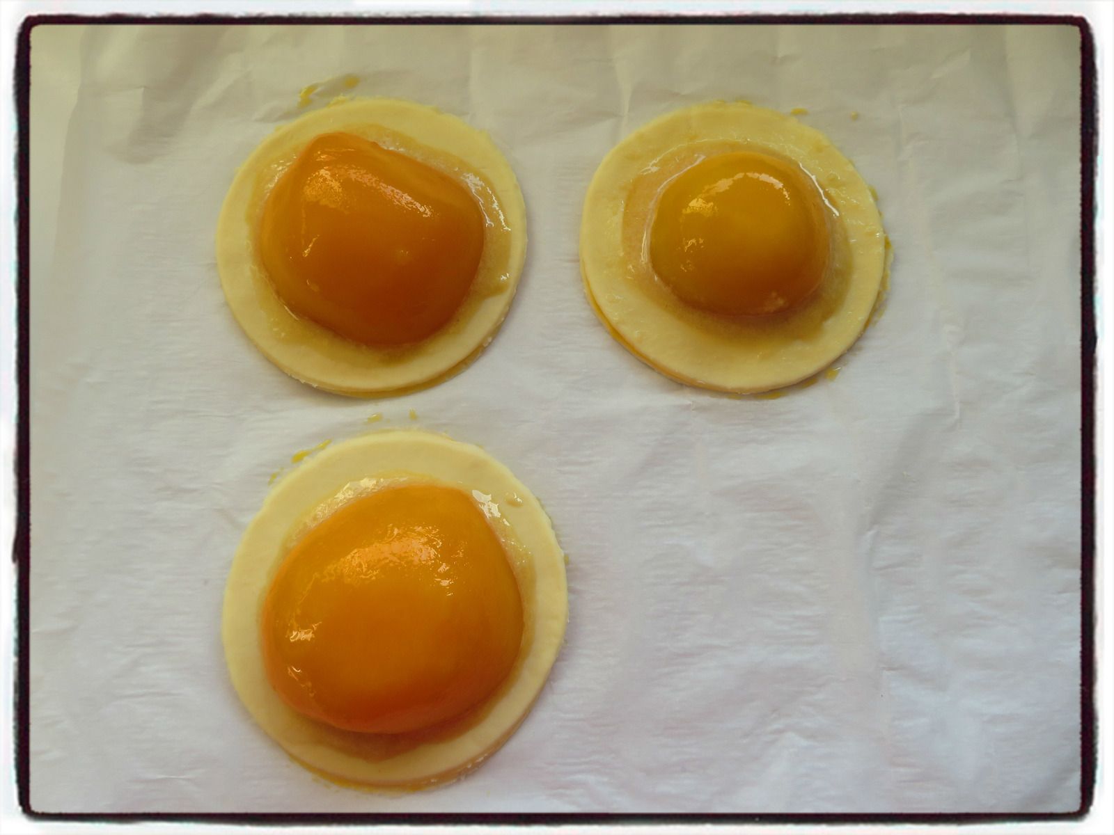 4/ Déposez une cuillère de cette préparation au centre de chaque feuilletée.